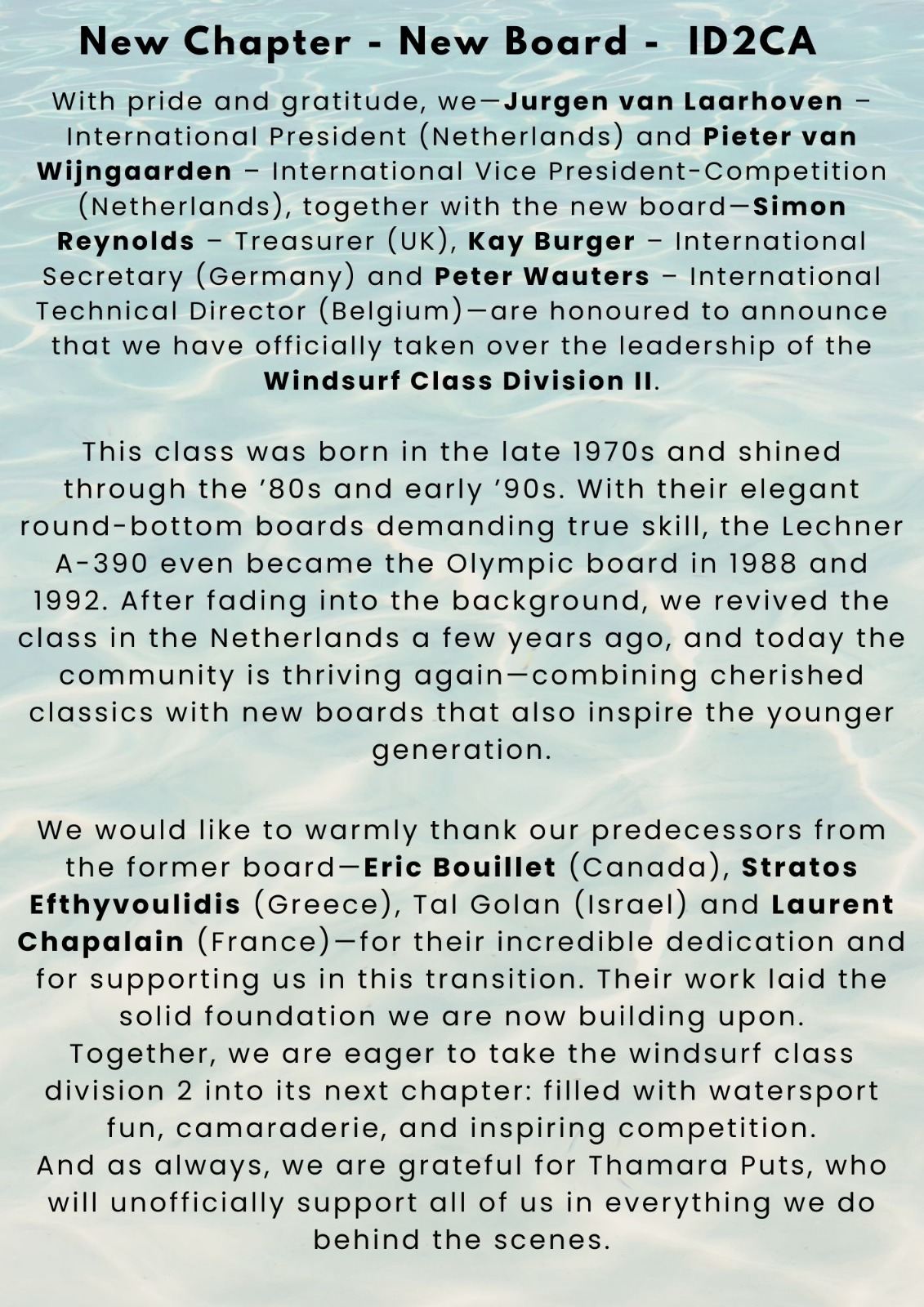 Congratulations from all the ID2CA members!